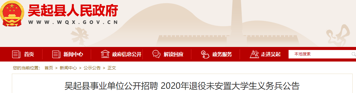 吳起縣事業單位公開招聘2020年退役未安置大學生義務兵工作領導小組辦公室